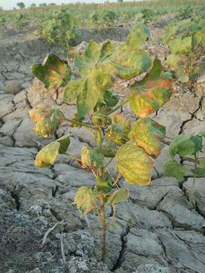 User I guess your major problem is associated with irrigation issues. The plant root might be damaged out of drought and lack of many other agronomic practices. Have you cultivated by zero tillage in rainfed condition? Pls irrigate for rapid recovery and ck if there's something like Leaf Reddening of Cotton accompanied by Spider Mites infestation.