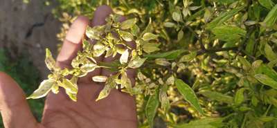 Mukhtar Khan جناب آپ کی بھجی گئی تصویر کو دیکھ کے معلوم ہوتا ہے کہ یہ آپ کے پودے پر Chilli Leaf Curl Virus کا حملہ ہے۔ آپ اوپر لنک پر کلک کرکے اسکے حوالے سے معلومات جانیں