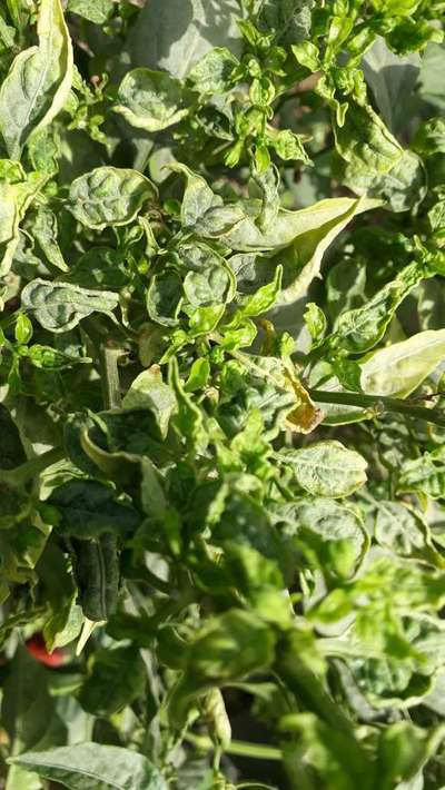 Ghulam Rasool جناب یہ آپ کے پودوں میں رس چوسنے والے کیڑوں تھرپس کا حملہ معلوم ہو رہا ہے۔ Chilli Thrips بعد میں Chilli Leaf Curl Virus بھی ہو سکتا ہے۔ مزید تفصیلات کے لئے اوپر لنک پر کلک کریں