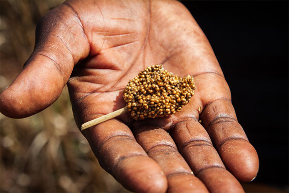A espécie gramínea Sorghum bicolor foi originalmente cultivada na África e agora é cultivada em regiões tropicais e subtropicais ao redor do mundo. Os principais usos do grão são para alimentos, forragem animal e produção de biocombustíveis. O sorgo desempenha um papel importante como cultura básica e geralmente é cultivado anualmente, embora existam alguns cultivares perenes.